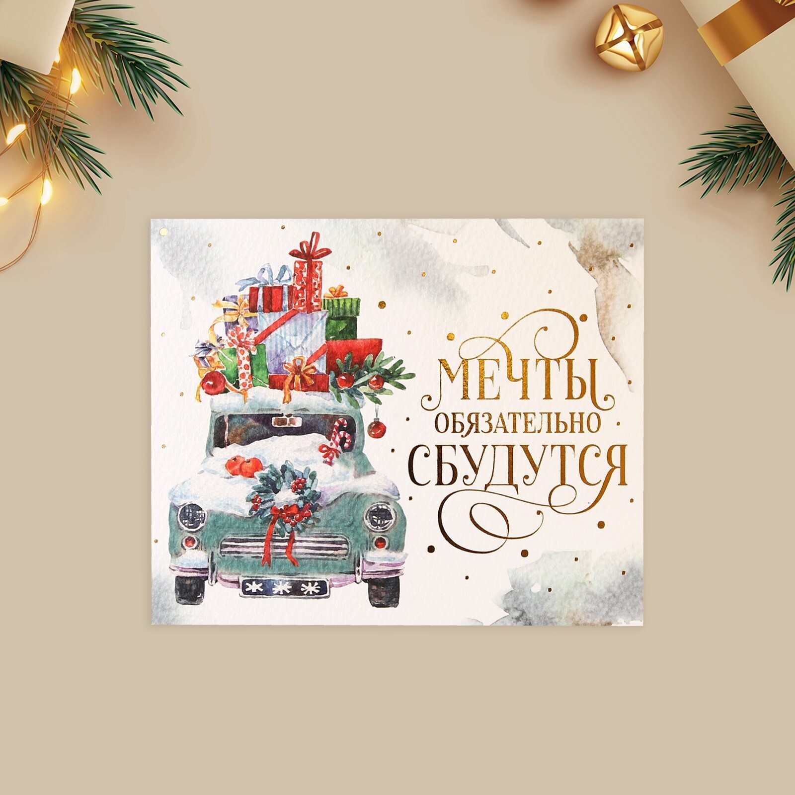 Открытка 10,5*8,8 см Мечты (машина, тиснение)