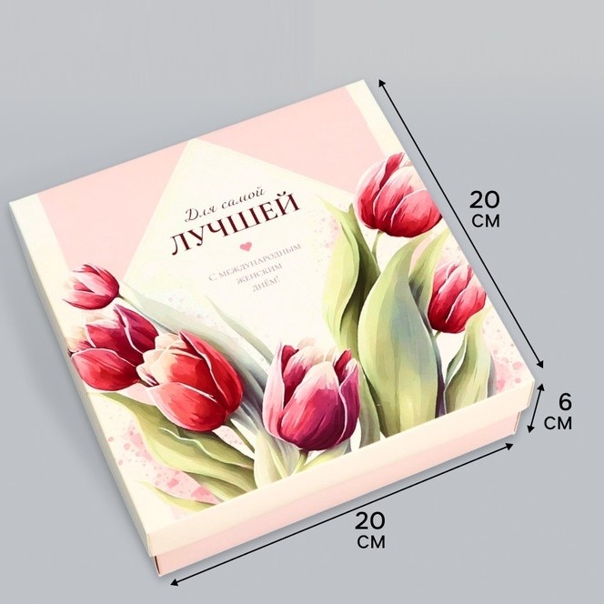 Коробка 20*20*6 см Самой- тюльпаны (крышка+дно)