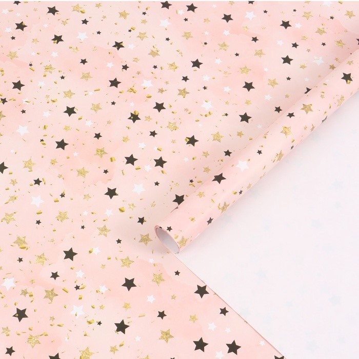 Бумага упаковочная Звезды розовая, 70*100 см, 1 лист