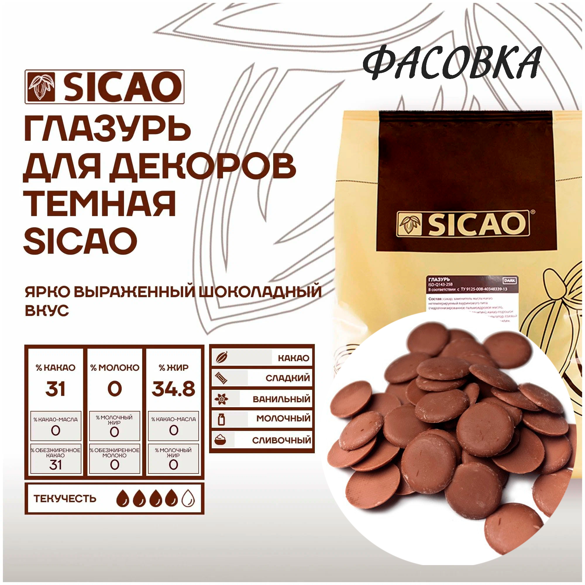 Глазурь кондитерская Темная Sicao, 200 гр