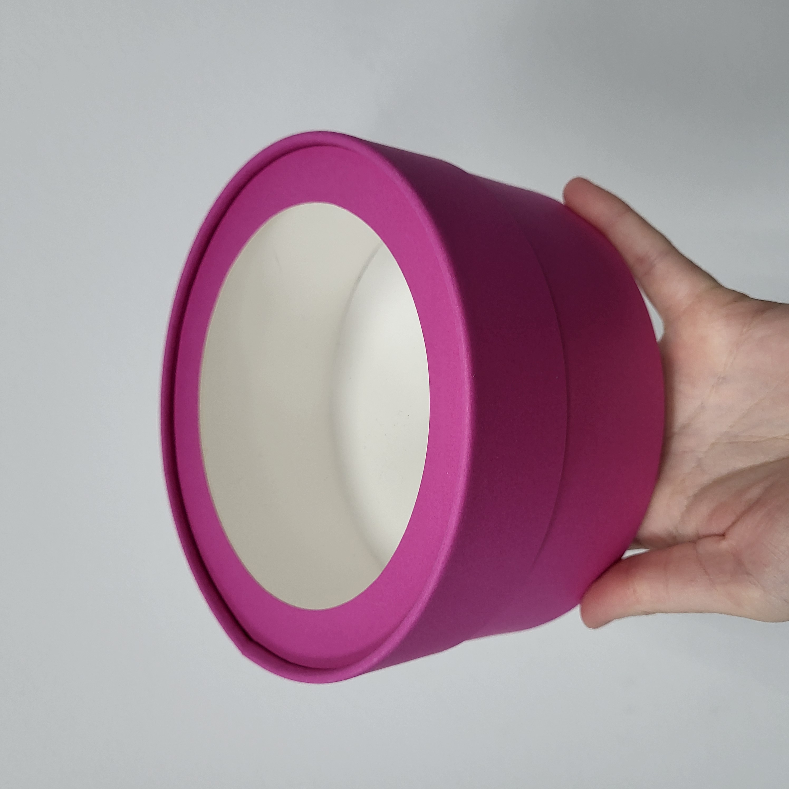 Коробка ТУБУС плотный с окном d=16 см h=8 см (Ярко-розовая)
