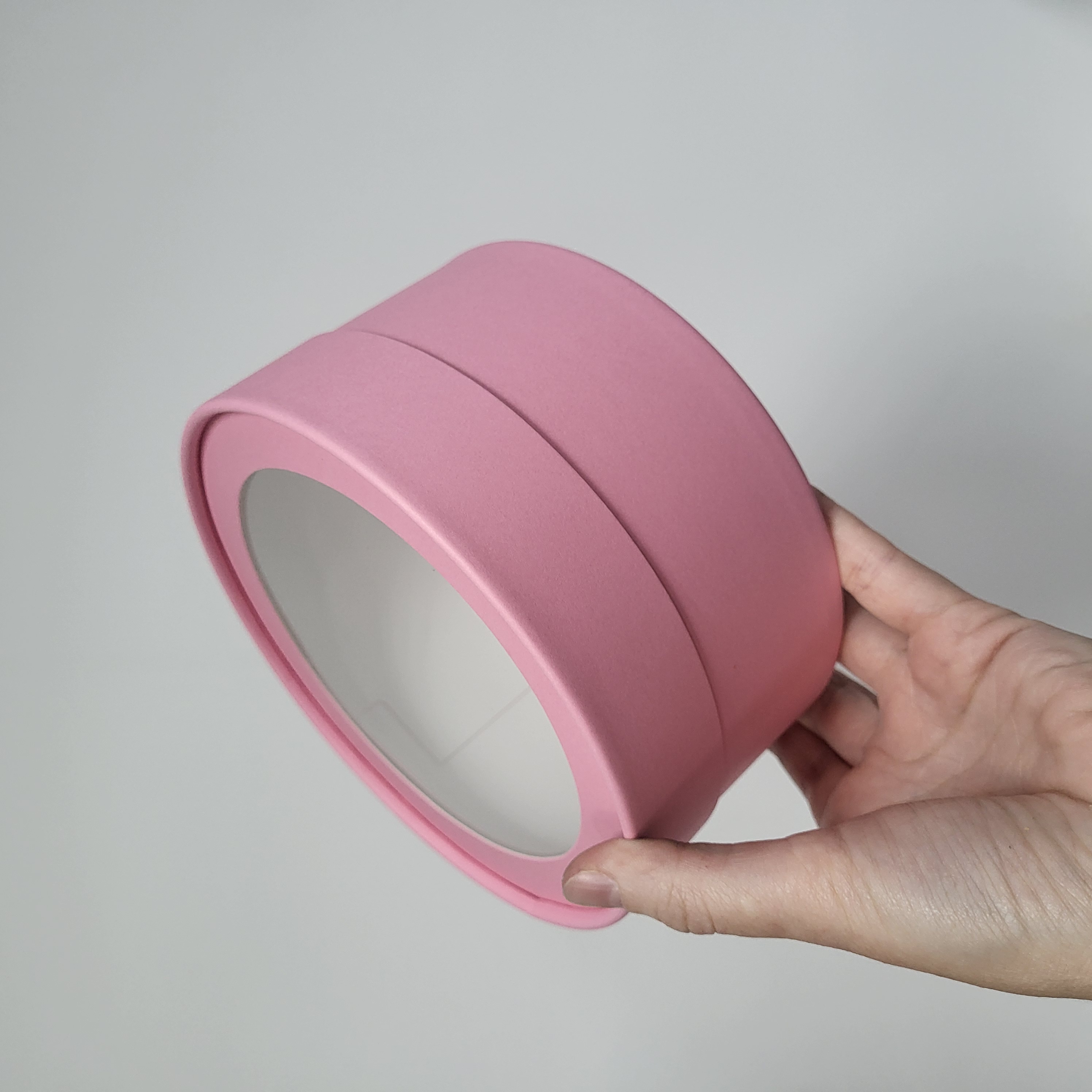 Коробка ТУБУС плотный с окном d=16 см h=8 см (Нежно-розовая)