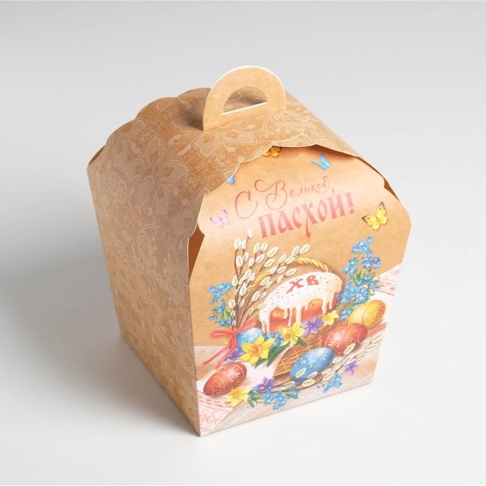 Коробка кулича 17*17*20 см С Великой Пасхой