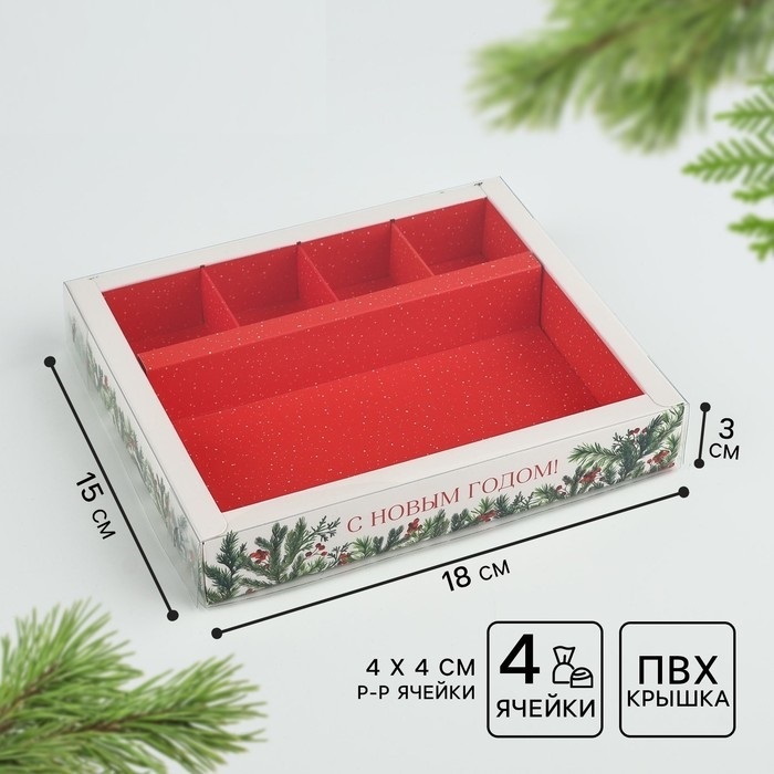 Коробка на 4 конфеты+шоколадка Еловый аромат