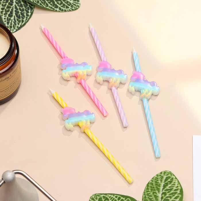 Свечи для торта Радужные единороги, 4 шт., спиральные, разноцветные