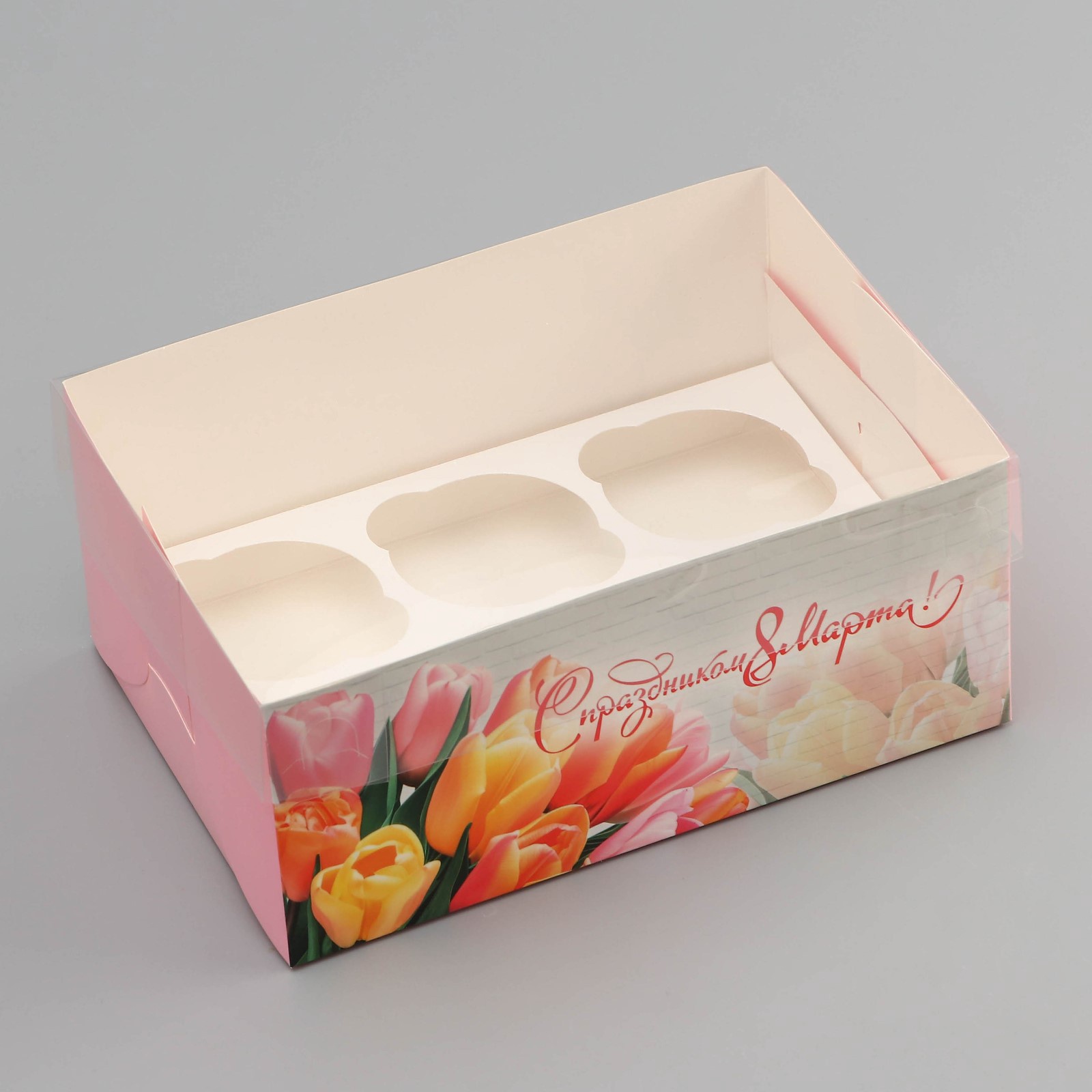 Коробка на 6 капкейков С праздником 8 марта, 23*16*10 см