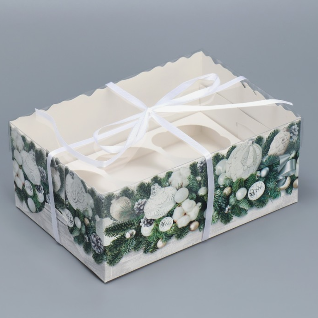 Коробка на 6 капкейков Снежные игрушки, 23*16*10см
