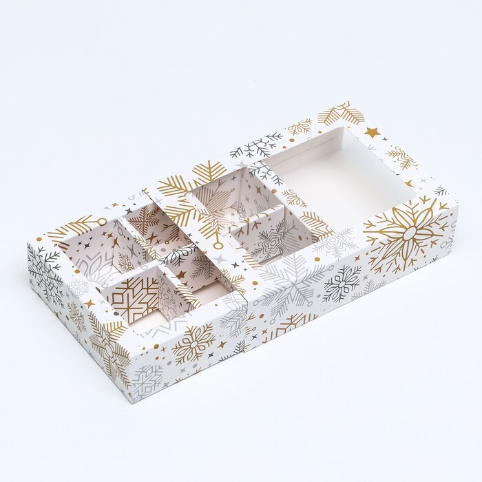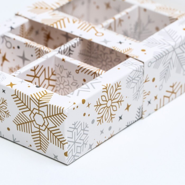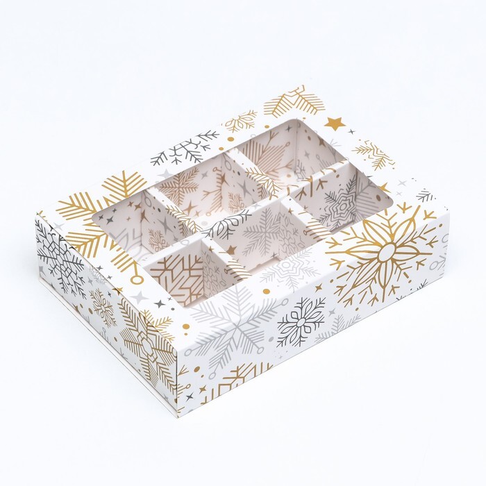 Коробка под 6 конфет Снежинки, 13.5*9.5*3.5 см
