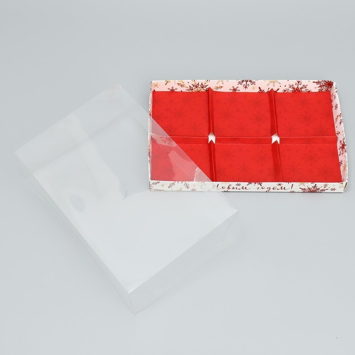 Коробка на 6 мусовых пирожных С Новым годом!, снежинки, 27*17.8*6.5 см