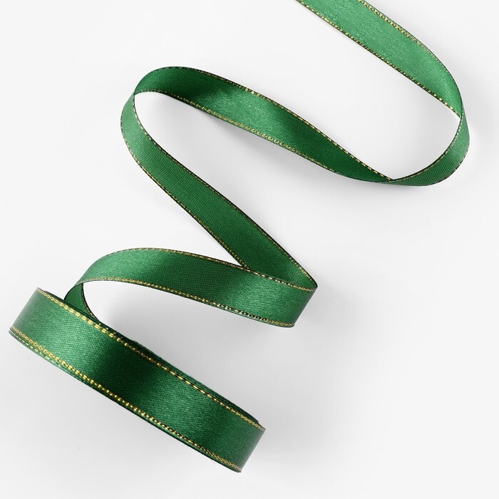 Лента атласная 15 мм Зеленая с золотым люрексом №049 (22м)