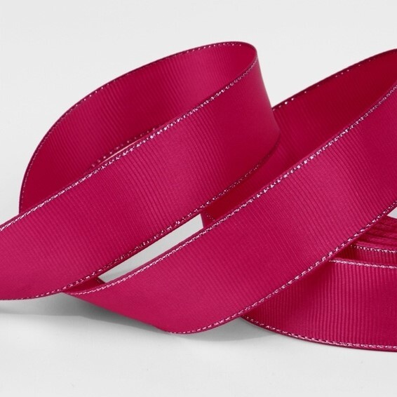 Лента РЕПСОВАЯ 25 мм ярко-розовая №028 с серебряным люрексом (22м)