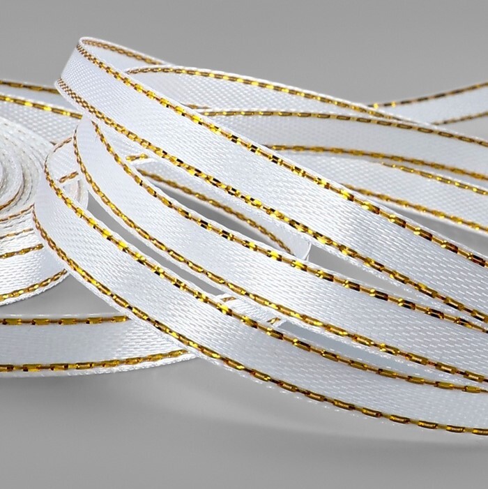 Лента атласная 6мм Белая№001 с золотым люрексом (22м)