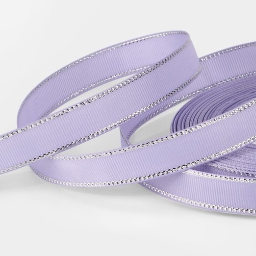 Лента РЕПСОВАЯ 15 мм сиреневая №021 с серебряным люрексом (22м)