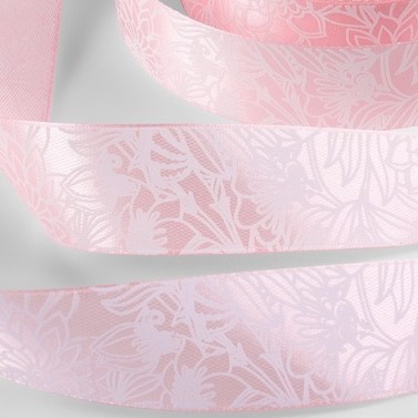 Лента атласная 25 мм Цветы Розовая, 18 м