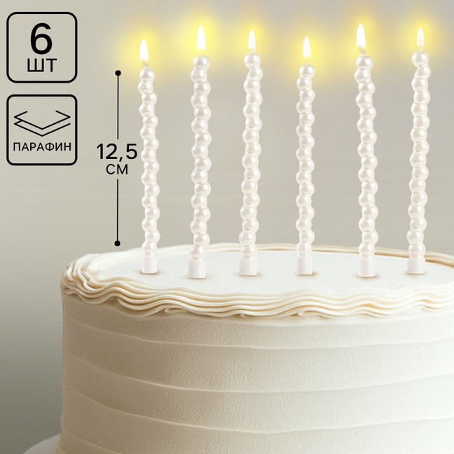 Свечи для торта Жемчужины, 6 шт., перламутр
