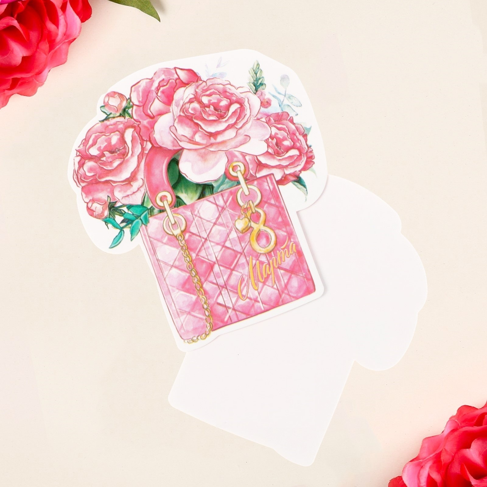 Открытка формовая 8 марта, букет, 5*8 см