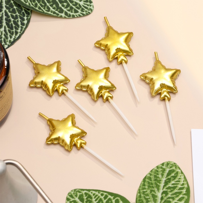 Свечи для торта, 5 шт. Воздушный шарик. Звезда, золотые