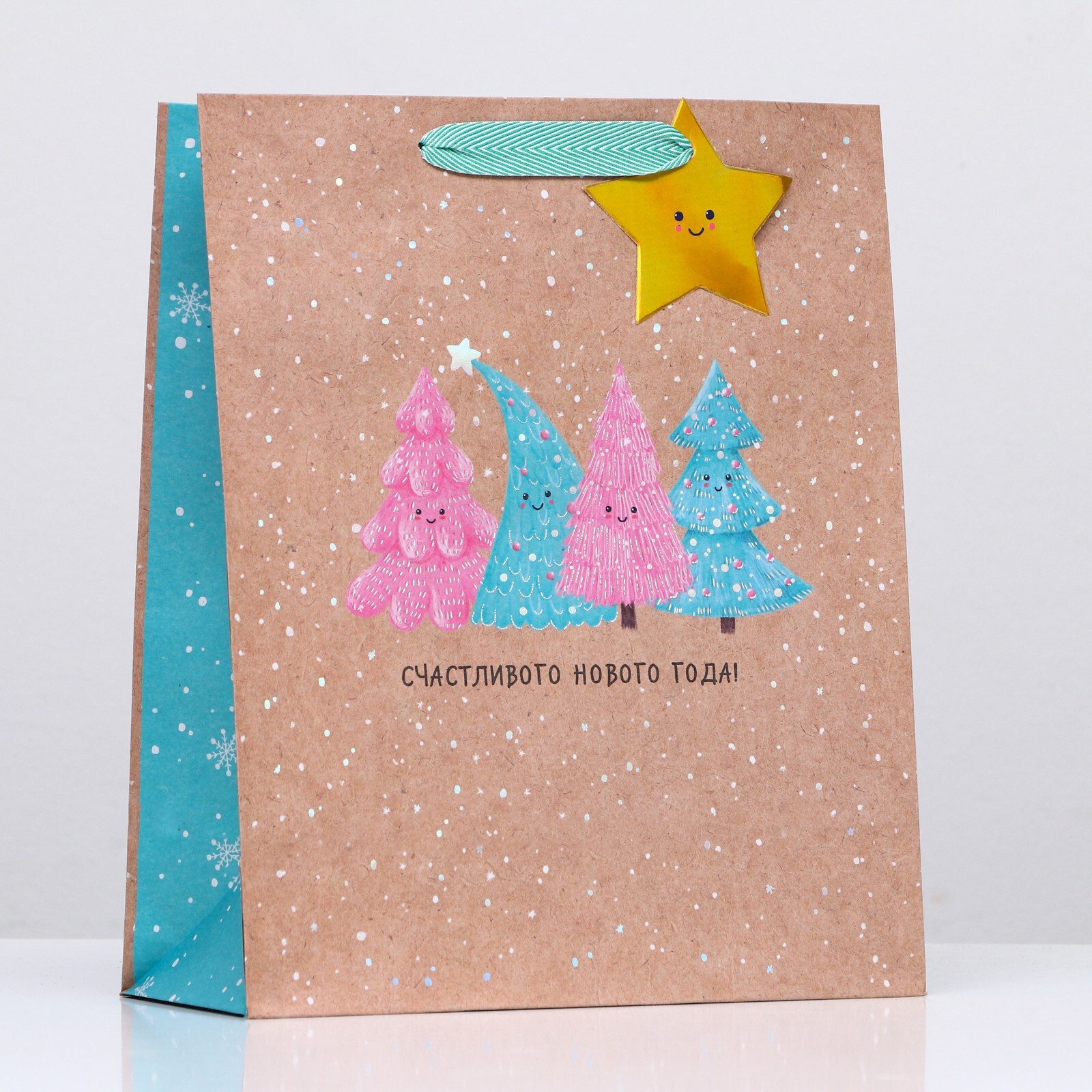 Пакет крафт Счастливого Нового Года, 26*32*12 см