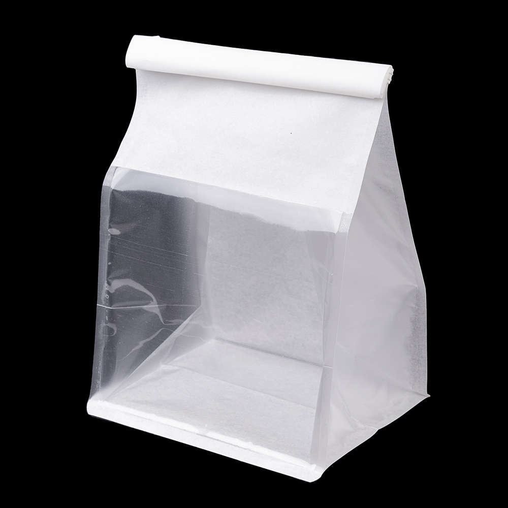 Пакет с прямоугольным дном 15*19*12 см с окном и зажимом, белый