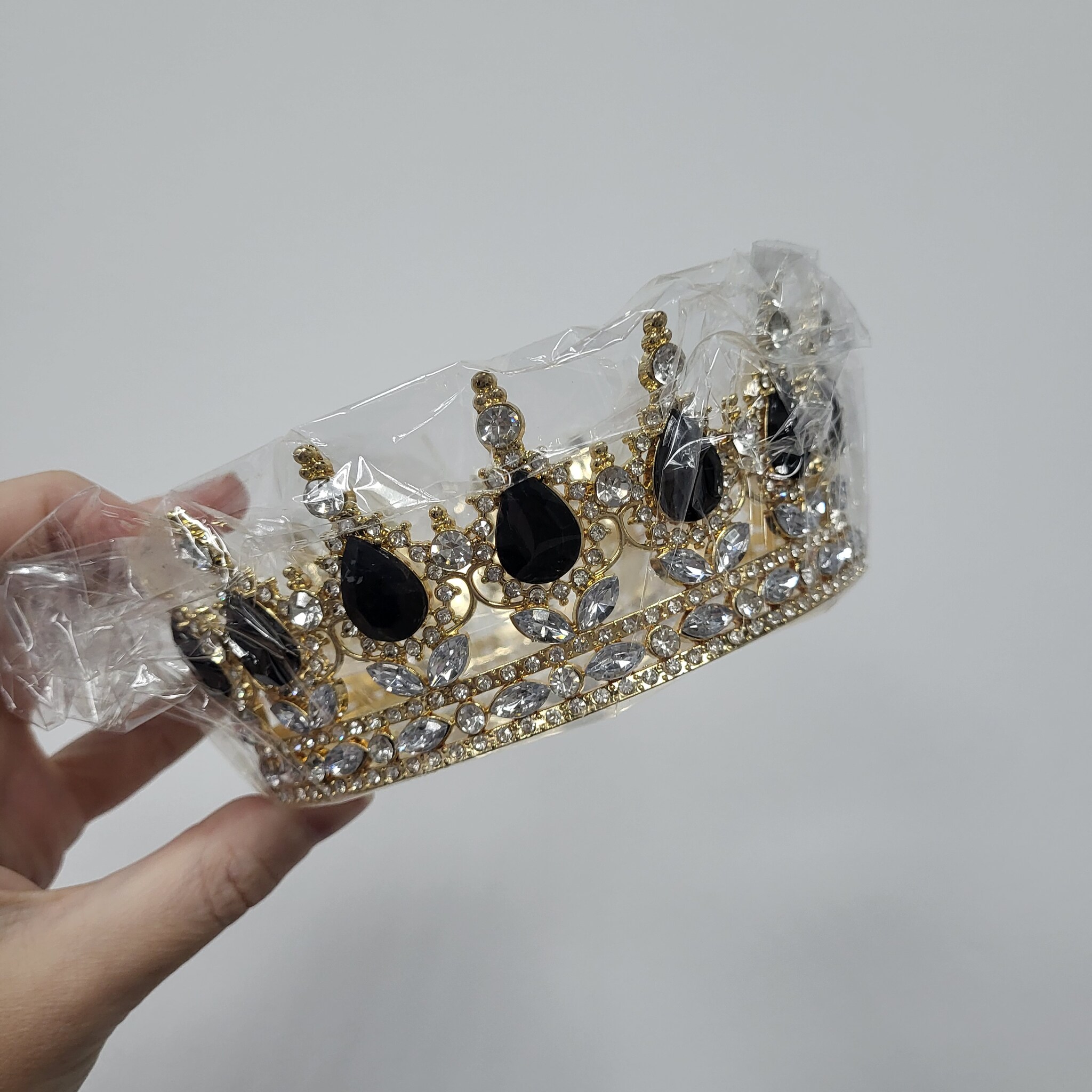 Корона Золотая Черные камни, диаметр низа 12,5 см