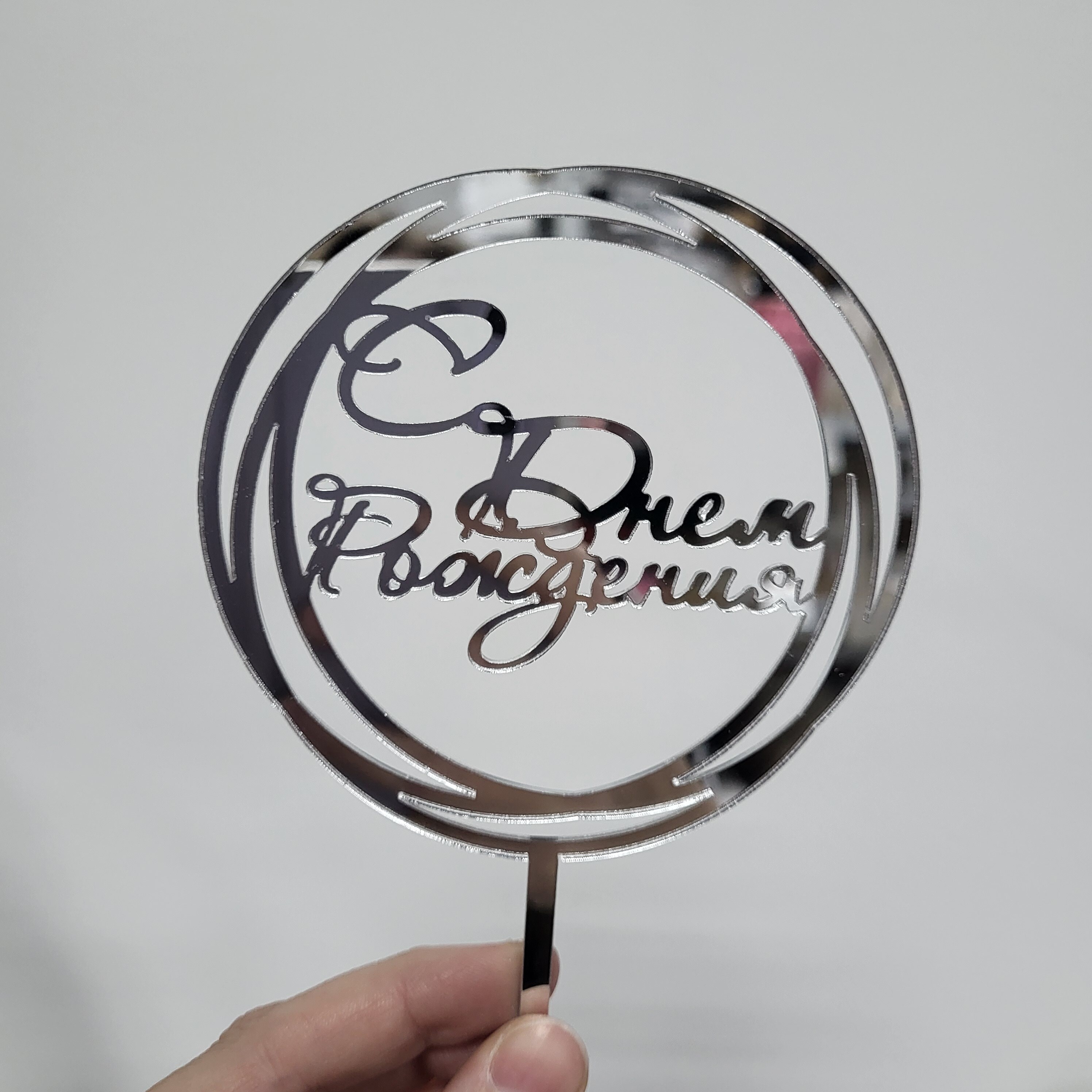 Топпер С днем рождения круг ( серебро)
