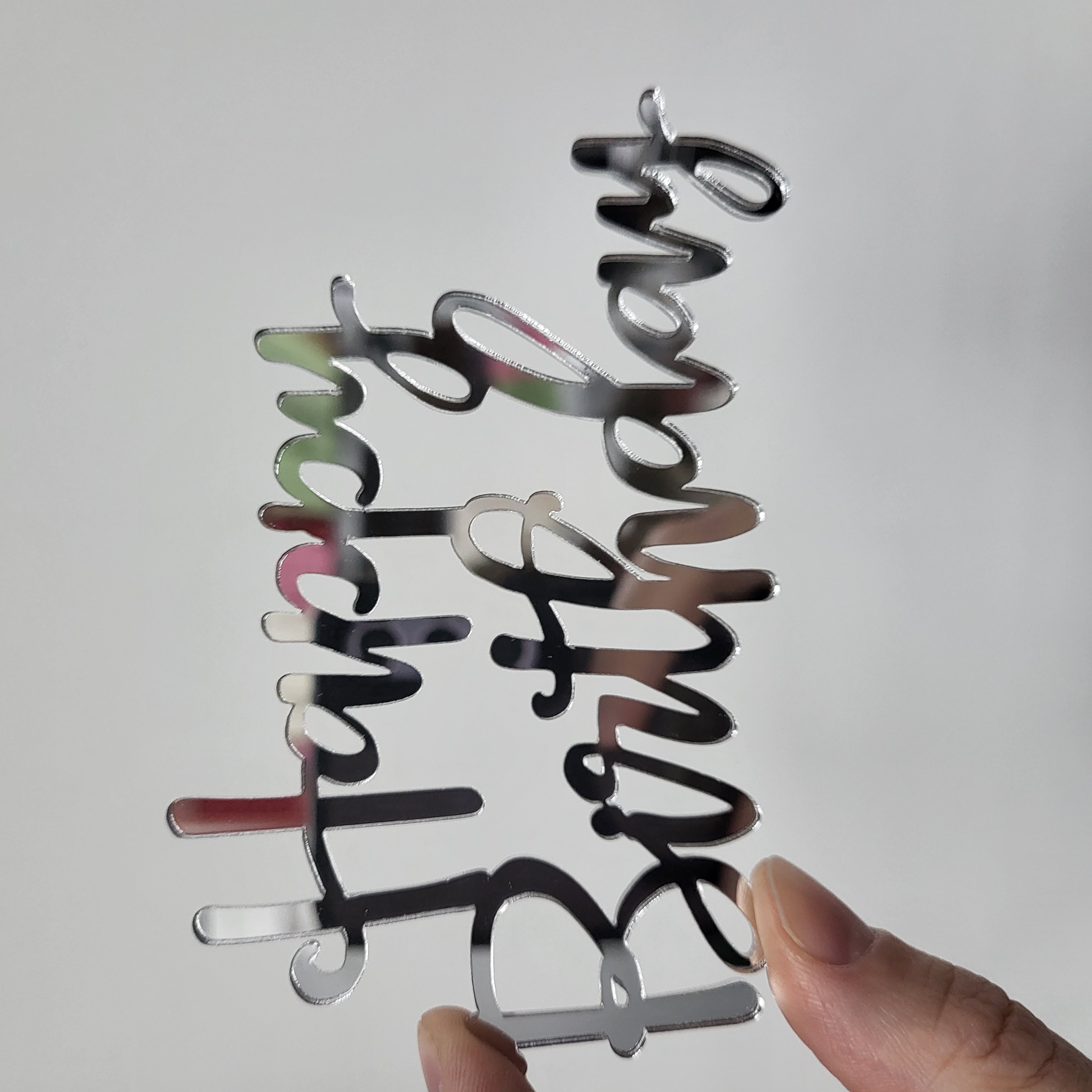 Топпер Happy Birthday прописью (Серебро, Боковина)